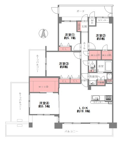 LDK 19.8帖 / 洋室 5.1帖 / 洋室 5.0帖 / 洋室 8.0帖 / 洋室 5.5帖 / |